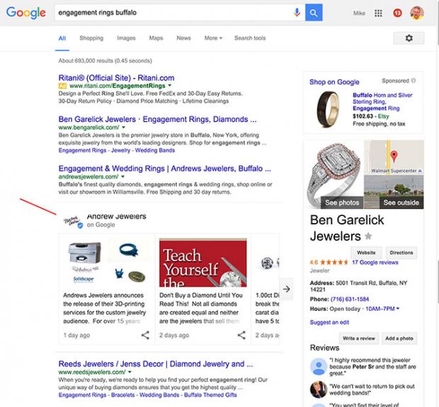 Theo The Verge, Google đang tiếp tục áp dụng các thử nghiệm này với các đơn vị kinh doanh nhỏ, người nổi tiếng và các nhãn hiệu lớn. Chuyên gia SEO Mike Blumenthal đã phát hiện ra điều này khi tìm mua nhẫn ở New York, và gặp các kết quả về một cửa hàng địa phương được hiển thị theo dạng thẻ phía trên các kết quả tìm kiếm thông thường. Người dùng có thể chia sẻ kết quả trực tiếp lên các mạng xã hội hoặc bấm vào hình để xem thông tin chi tiết hơn.