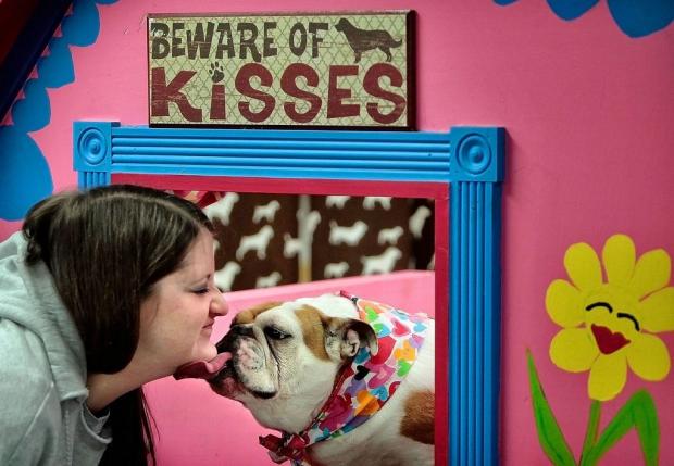 Ashley McMillan đã thể hiện sự ủng hộ tuyệt đối của mình với tổ chức chuyên giải cứu các chú chó Hollywood Feed, bằng cách hôn một chú cún to xác vào ngày 13/2.