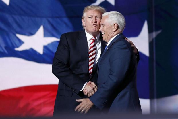 Nụ hôn chính trị của Donald Trump lúc đó đang là ứng cử viên Tổng thống Mỹ của Đảng Cộng hòa dành cho 'phó tướng' Mike Pence tại ngày thứ ba của Hội nghị Đảng Cộng hòa tại Cleveland, 20/7.
