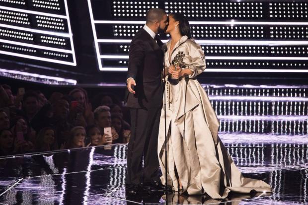 Drake đã hôn Rihanna sau khi cô ca sỹ này nhận giải tại MTV Music Awards vào 28/8 ở Madison Square Garden.