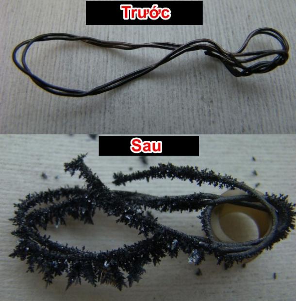 Một dây kim loại tiếp xúc với môi trường mô phỏng bề mặt Sao Kim trong buồng chứa GEER của NASA. (Ảnh: NASA)