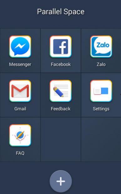 Parallel Space rất dễ sử dụng và hoàn toàn miễn phí trên Google Play. Sau khi tải về và cài đặt, trong giao diện chính của ứng dụng, bạn hãy nhấn vào biểu tượng dấu '+' và chọn Facebook .