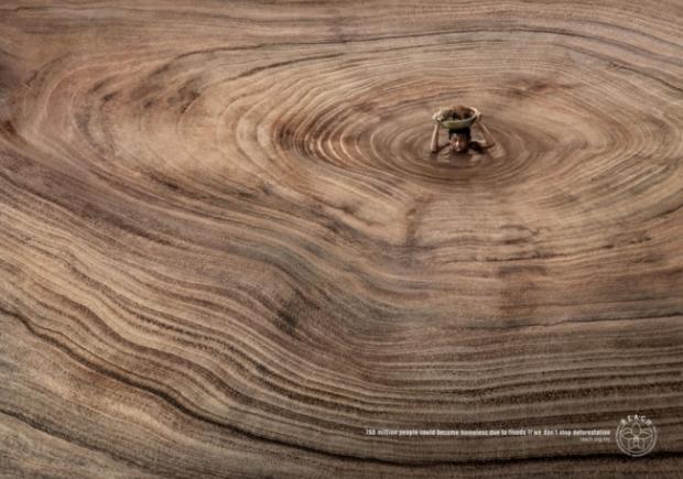 Thông điệp của mẩu quảng cáo là: nạn phá rừng sẽ gây nên những hậu quả thực.