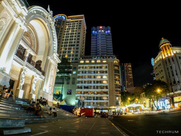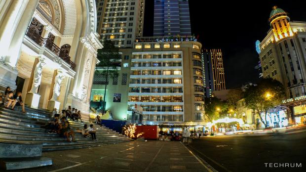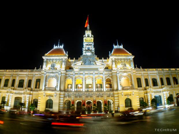 Ảnh phơi sáng trước Ủy Ban Nhân Dân TP với thông số 0.5s ƒ/2 ISO100 3.5mm