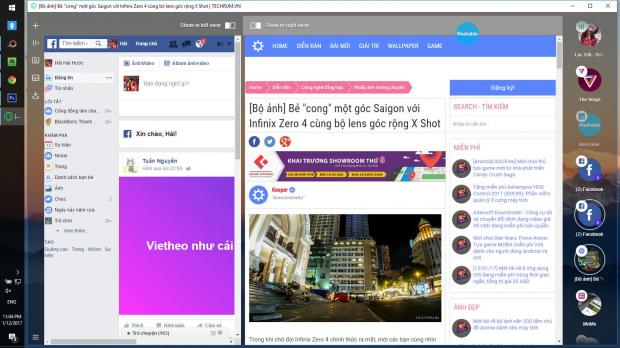 Thông thường, để làm việc cùng lúc 2 hoặc nhiều trang web khác nhau bạn sẽ phải mở các tab mới. Tuy nhiên, Opera Neon cho phép người dùng chia đôi màn hình bằng cách kéo tab trực tiếp vào bảng điều khiển và lựa chọn bên trái hoặc phải.