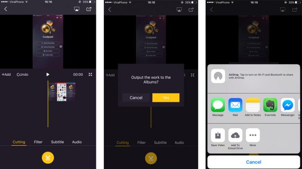 Bên cạnh đó, ứng dụng CoolPixel còn tích hợp thêm một trình chỉnh sửa video, cho phép người dùng thực hiện một số thao tác cơ bản như cắt ghép, thêm bộ lọc vào đoạn video vừa quay.