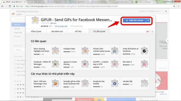 Đầu tiên, bạn đọc cần truy cập vào đường link này (GIFUR - Send GIFs for Facebook Messenger) rồi chọn mục 'thêm vào Chrome' để tải về trọn bộ icon Rồng Pikachu.