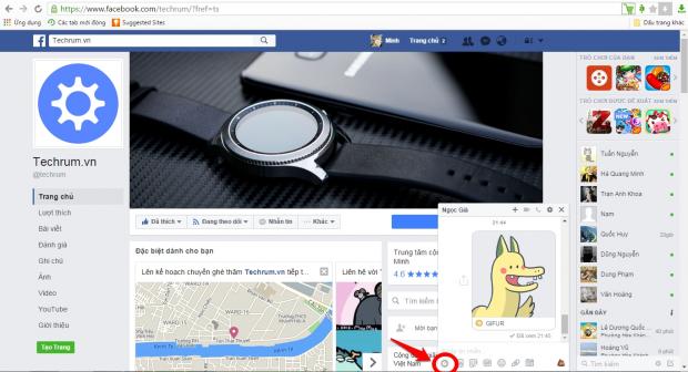 Tiếp theo, bạn chọn bất kỳ một người nào đó để khung chat hiện lên. Ở phần góc trái của khung chat lúc này có hiện lên một chữ 'G', kick vào đây thì bộ icon này sẽ hiện ra.