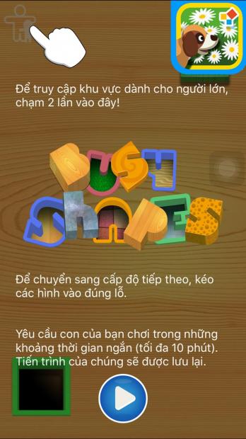 Trong Busy Shapes, nhiệm vụ của bạn và bé là tìm cách đưa các khối hình có sẵn vào những chiếc lỗ sao cho phù hợp với kích thước của khối hình đó. Chính điều này sẽ giúp cho não của bé cải thiện mức độ xử lý khi tiếp nhận thông tin và tăng khả năng tư duy qua mỗi màn chơi. Bên cạnh đó, tựa game này sở hữu một giao diện khá thân thiện, phong cách thiết kế nhẹ nhàng và có hỗ trợ tiếng Việt, giúp người chơi (đặc biệt là các bé) dễ dàng thao tác hơn.