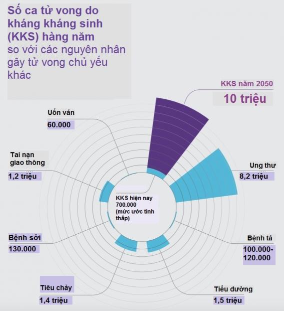 báo cáo hôm thứ 5 (13/1) vừa qua, cho thấy vấn nạn đang ngày càng gia tăng của hiện tượng kháng kháng sinh [1]. Hiện tượng này được dự đoán sẽ tước đoạt tính mạng của 10 triệu người vào năm 2050.