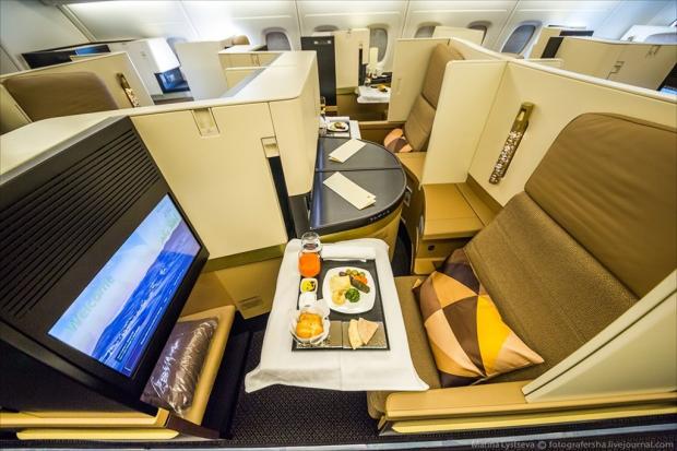 Đây là khoang dành cho hạng thương gia. Mỗi hành khách sẽ có một không gian riêng và ghế ngồi có thể biến thành giường ngủ chỉ bằng một nút bấm nhẹ nhàng.