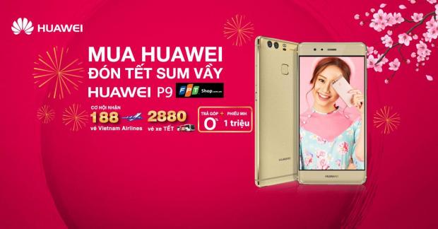 Ở phân khúc cao hơn, người dùng có cơ hội sở hữu chiếc điện thoại cao cấp Huawei P9 Dual Camera kết hợp với nhà sản xuất máy ảnh hàng đầu Leica. Hãng cũng áp dụng chương trình khuyến mại khủng gồm 188 chiếc vé máy bay Vietnam Airlines và 2880 vé xe Tết, cũng được trả góp 0 đồng và phiếu mua hàng trị giá 1 triệu. Chắc hẳn đây là sự lựa chọn hoàn hảo cho các gia đình, các bạn trẻ vui xuân chụp ảnh Tết Đinh Dậu cùng Huawei P9.