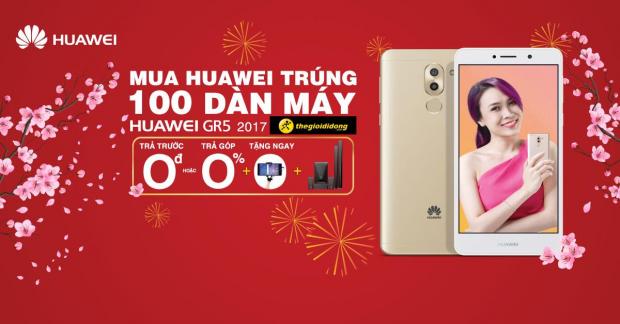 Tại hệ thống Thế Giới di động, Huawei áp dụng chương trình ưu đãi tri ân cuối năm khi mua sản phẩm mới nhất GR5 2017 khách hàng có cơ hội trúng thưởng dàn máy nghe nhạc và gậy selfie, ngoài ra Huawei còn áp dụng chương trình trả trước 0 đồng hoặc trả góp từ 0 đồng. Đây là điểm nổi bật nhất của hãng này khi tung ra chương trình ưu đãi cho vay tiêu dùng đối với sản phẩm điện thoại phân khúc tầm trung mà không hãng nào có.