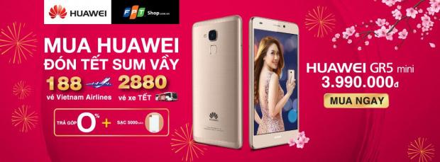 Ngoài ra, khi mua Huawei GR5 2017 tại , các khách hàng có cơ hội nhận tấm vé máy bay của Vietnam Airlines hoặc vé xe khách để sum vầy cùng gia đình trong bữa cơm tất niên ngày Tết. Ngoài ra, Huawei cũng áp dụng hỗ trợ cho vay tiêu dùng trả trước 0 đồng hoặc trả góp từ 0 đồng và quà tặng đính kèm là pin sạc dự phòng chính hãng và gậy selfie.