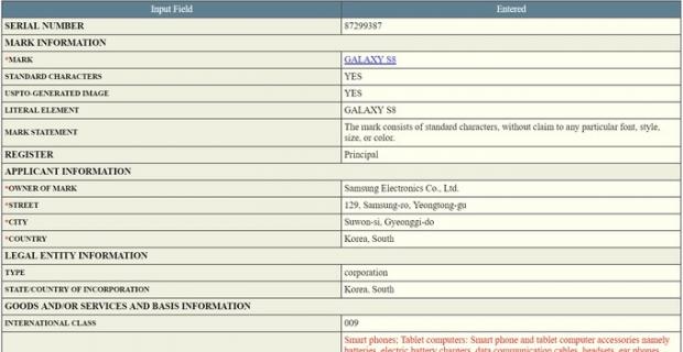 Với bất cứ ai đang mong đợi sự xuất hiện của thế hệ smartphone Android cao cấp kế tiếp từ Samsung, việc Samsung nộp hồ sơ đăng ký cho nhãn hiệu 'Galaxy S8' lên USPTO ( Ủy ban cấp phép cho bằng sáng chế và nhãn hiệu hàng hoá của Hoa Kỳ) sẽ là một tin tức 'tốt lành'. Sở dĩ nói như vậy bởi theo thông lệ, những hồ sơ đăng ký nhãn hiệu như thế này đều được Samsung thực hiện ngay trước thềm sự kiện ra mắt các mẫu smartphone cao cấp thuộc S-series của họ.