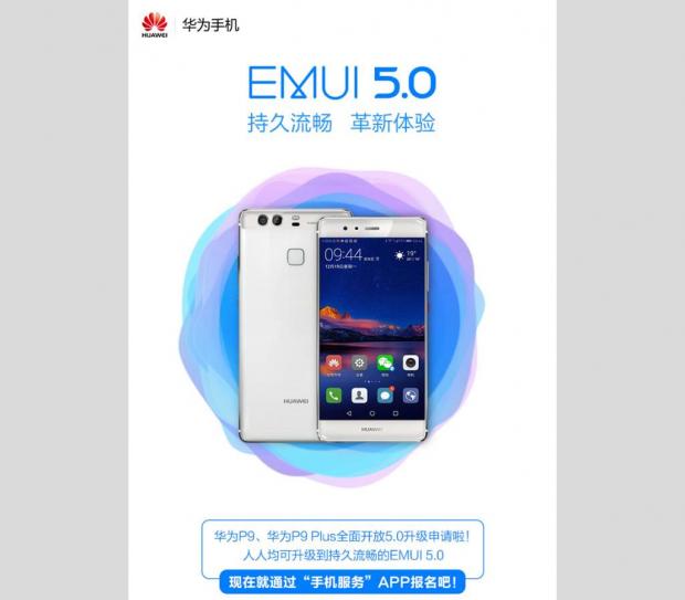 Huawei cũng phát hành một poster quảng cáo trên trang Weibo với nội dung thông báo hai sản phẩm P9 và P9 Plus sẽ tiếp tục nhận bản nâng cấp EMUI 5.0 đầy đủ trước khi năm mới diễn ra trong vài ngày tới.