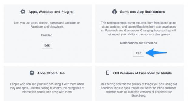 Bước 3: Chọn phần Games and Apps Notifications và click nút Edit