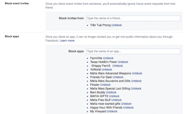 Bước 3: Bạn sẽ nhìn thấy một khung nhập liệu có tên Block Apps, đơn giản bạn chỉ cần nhập tên ứng dụng mà bạn không muốn nhận lời mời. Từ này chúng ta sẽ bị làm phiền bởi những thông báo đến từ các lời mời nữa.