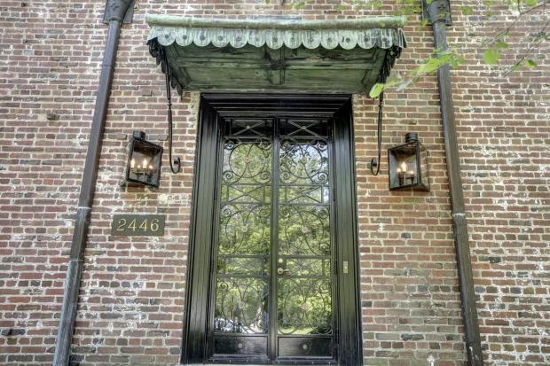 Đèn cầy giả được treo trên tường ở hông lối vào nhà.