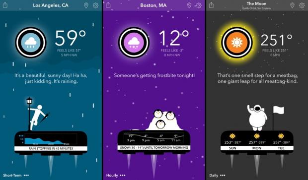 CARROT Weather Free là một ứng dụng thời tiết năng động, được cung cấp những dữ liệu chính xác từ trung tâm khí tượng thủy văn Forecast.io. Tuy nhiên, điểm ấn tượng không chỉ năm ở đó, mà còn nhờ vào những đoạn hội thoại với nội dung hài hước, đi kèm các cảnh diễn hoạt họa thú vị và rất nhiều giao diện đẹp mắt khác nhau.