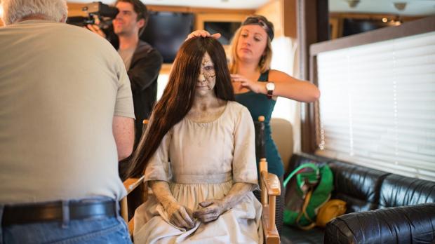 Diễn viên đang được trang điểm trước khi lên 'sàn'.