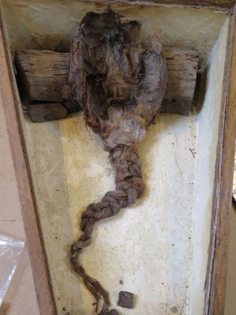 [/i]Mái tóc còn nguyên vẹn này đã được phát hiện bởi người đào huyệt mộ vào năm 1839. (Ảnh: Jamie Cameron)