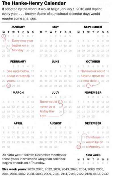 Đó là “Lịch và giờ Hanke-Henry” mà bạn có thế xem ở đây . Hệ thống được phát triển từ năm 2004, bởi hai nhà khoa học Hoa Kỳ: Steve Hanke đến từ Viện nghiên cứu chiến lược CATO và Richard Conn Henry tại Đại học Johns Hopkins. Mục đích của bộ lịch là xóa bỏ toàn bộ rắc rối gây ra bởi sự phân chia múi giờ và sự chênh lệch thứ ngày tháng trên toàn thế giới.