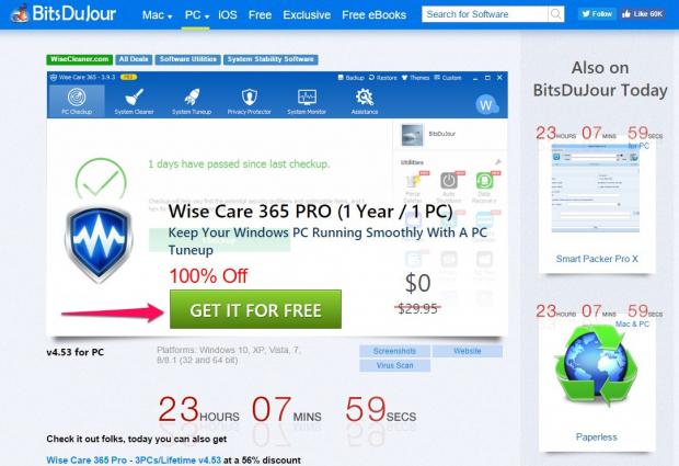 Wise Care 365 Pro là phần mềm cải thiện hiệu suất máy tính, hỗ trợ tăng tốc độ xử lý của hệ điều hành, giải phóng dung lượng của các ổ cứng, ổ cài đặt, giúp máy tính hoạt động trơn tru với hiệu suất hoạt động cao hơn và giảm tình trạng giật, lag khi sử dụng lâu. Thông thường Wise Care 365 Pro có giá 29,95 USD, nhưng hiện tại nhà phát hành đang cho phép tải về và sử dụng bản quyền miễn phí.