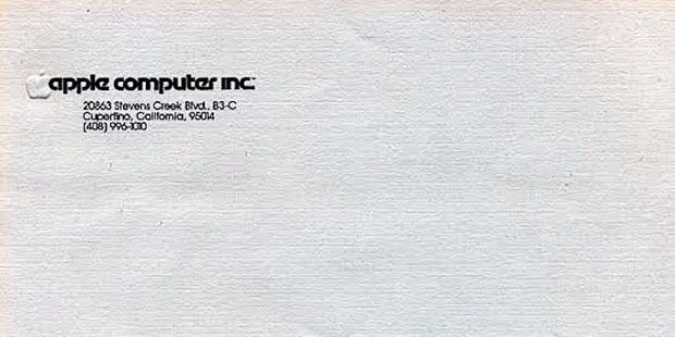 Letterhead đầu tiên của Apple được Johnson giữ lại.