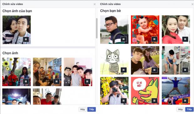 Nếu cảm thấy chưa hài lòng, bạn hãy nhấn Edit để chyển sang trang chỉnh sửa. Tại đây, bạn có thể thay thế những mặc định bằng các bức ảnh có sẵn trên trang cá nhân hoặc tải thêm và chọn người bạn yêu thích mong xuất hiện trong video.