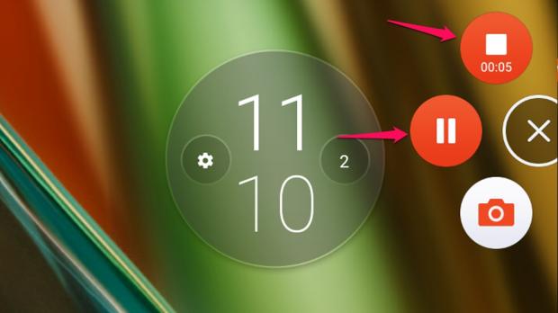 Để tạm dừng bạn nhấn nút tròn với biểu tượng đường thẳng song song, để ngừng quay và lưu video vào bộ nhớ máy bạn nhấn nút tròn với biểu tượng ô vuông.