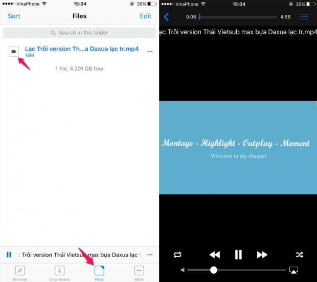 Bạn cũng có thể xem ngoại tuyến trực tiếp trên ứng dụng Browser and File Manager for Documents, trình phát video khá chuyên nghiệp.