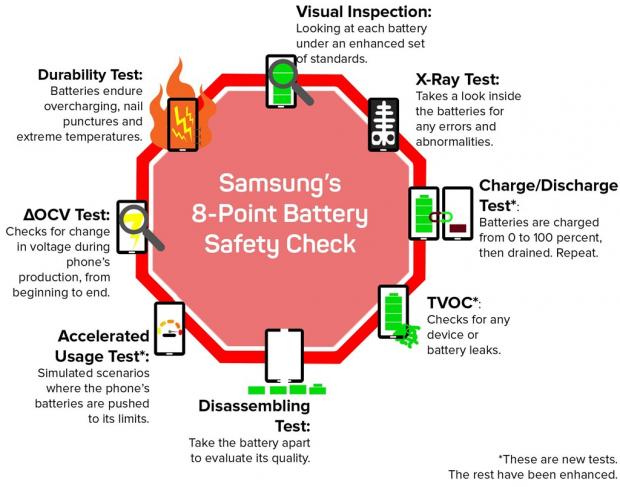Quy trình triểm tra pin tám điểm mới của Samsung, nhằm tránh những trường hợp tương tự trên Galaxy Note 7.