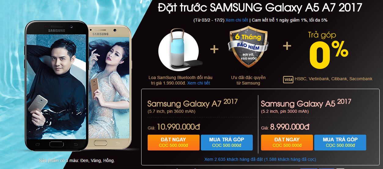 Mặc dù đã hơn 3 ngày kể từ ngày mở hệ thống cho phép đặt hàng trực tuyến tuy nhiên vẫn còn rất nhiều người mong muốn sở hữu bộ đôi Galaxy A5, Galaxy A7 2017. Chính vì vậy, số lượng đặt mua vẫn không ngừng tăng lên và con số đã vượt 2.600 người.