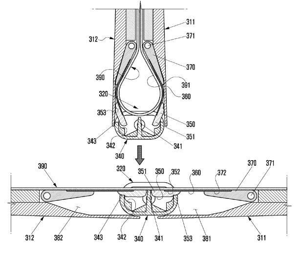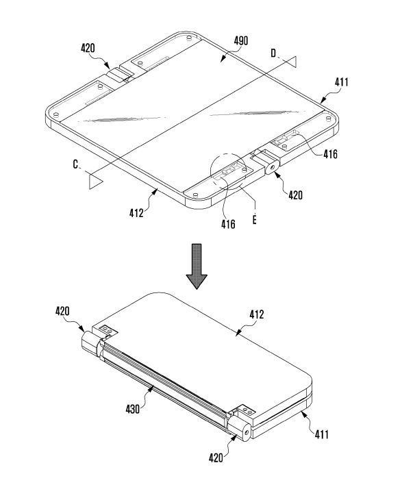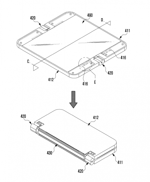 Trong khi Samsung đã từng sở hữu một bằng sáng chế liên quan đến một thiết bị có màn hình dẻo, thì với bằng sáng chế này, chiếc màn hình có thể gập lại theo một cách khác với sự hỗ trợ của bộ phần bản lề.