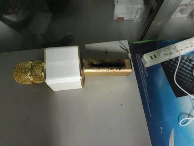 Anh Nguyễn Ngọc Sáng (Đức Thọ, Hà Tĩnh) chia sẻ lên trang Facebook cá nhân đoạn video do camera ghi lại trong đêm 5/2. Trong đó, chiếc micro hát karaoke cầm tay đang sạc pin bỗng nhiên phát nổ, đốm lửa lớn, sáng chói cả căn phòng.
