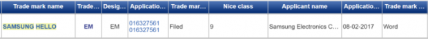 Hồ sơ nói trên của Samsung được gửi tới Văn phòng sở hữu trí tuệ Châu Âu (EIPO) với nội dung xin bảo hộ cho nhãn hiệu Samsung Hello với mô tả là 'một phần mềm giúp người dùng máy tính hoặc thiết bị di động kích hoạt khả năng truy cập, kết hợp, sắp xếp hay tương tác với các nội dung, thông tin và hình ảnh cũng như các chủ đề thuộc các mối quan tâm chung của người dùng đó.'