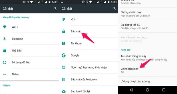 Truy cập Cài đặt > Bảo mật > kích hoạt tính năng Ghim màn hình. Bây giờ, để ghim ứng dụng, bạn chỉ cần mở tab đa nhiệm và nhấn vào biểu tượng ghim ở góc dưới bên phải ứng dụng đó là xong. Để tắng tính năng này, bạn nhấn đồng thời phím Quay lại (Back) và phím Đa nhiệm.