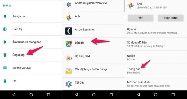 Truy cập vào Cài đặt > Ứng dụng > chọn ứng dụng muốn tùy chỉnh thông báo > chọn mục Thông báo là bắt đầu thiết lập theo ý muốn.