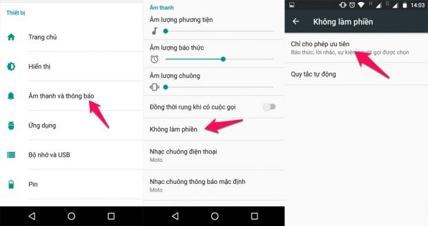 Truy cập vào Cài đặt > Âm thanh và thông báo > chọn chế độ Không làm phiền > thiết lập mục Chỉ cho phép ưu tiên.