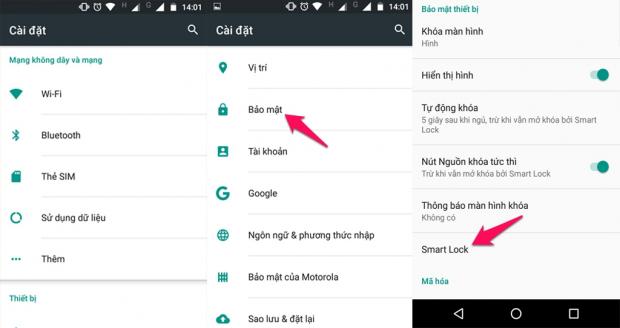 Truy cập vào Cài đặt > Bảo mật > chọn tính năng Smart Lock và tùy chọn phương thức hoặc thiết bị tin cậy tùy ý.