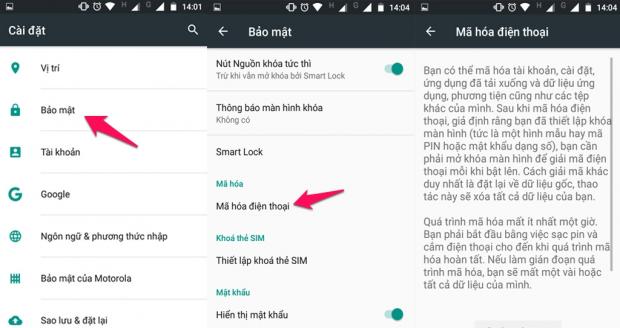 Mã hóa thiết bị là cách giúp bảo mật dữ liệu cao nhất đối với các dòng máy Android. Để thực hiện thao tác này, bạn làm như sau: Truy cập vào Cài đặt > Bảo mật > chọn mục Mã hóa thiết bị và bắt đầu quá trình mã hóa.
