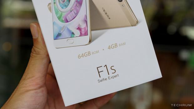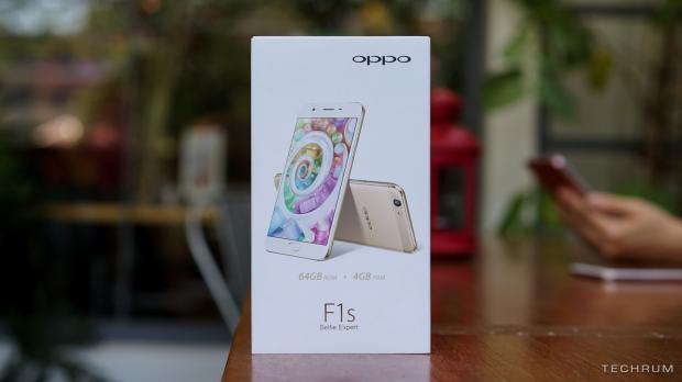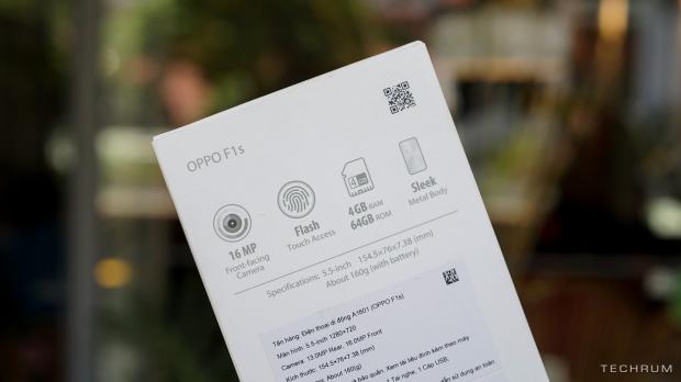 Hộp F1s 2017 chỉ khác một chút so với hộp máy 2016 đó là dòng chữ '64GB ROM - 4GB RAM'. Đây là điểm nhất của chiếc máy đời mới mà theo đó, chứa được nhiều dữ liệu hơn so với bản 32GB cũng như hiệu năng cải thiện, đa nhiệm tốt hơn với 4GB RAM, cao hơn 3GB trên F1s 2016.