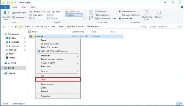 Từ nay, bạn sẽ không cần phải làm thế nữa, vì tất cả cơ sở dữ liệu cài đặt của Start Menu đều được lưu trong thư mục TileDataLayer.