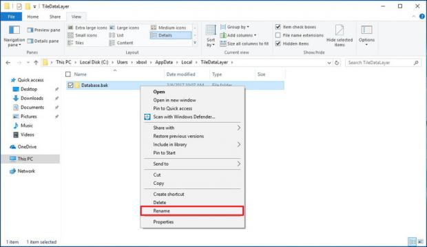 Vào đường dẫn sau C:UsersYOUR-ACCOUNT-NAMEAppDataLocalTileDataLayer.