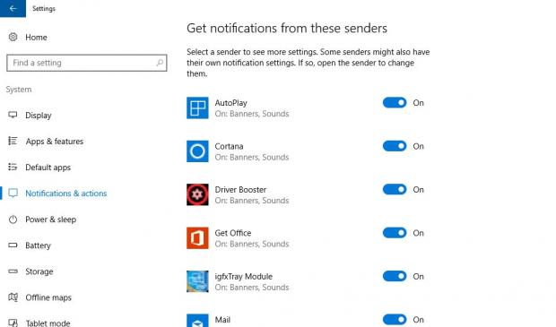Bạn có thể là người ghét sự phân tâm. Windows 10 luôn thể hiện thông báo mỗi khi máy tính có tiến trình nào đang chạy. Bạn hãy tắt thông báo những ứng dụng cá nhân, đặc biệt làm cho bạn cảm thấy khó chịu.