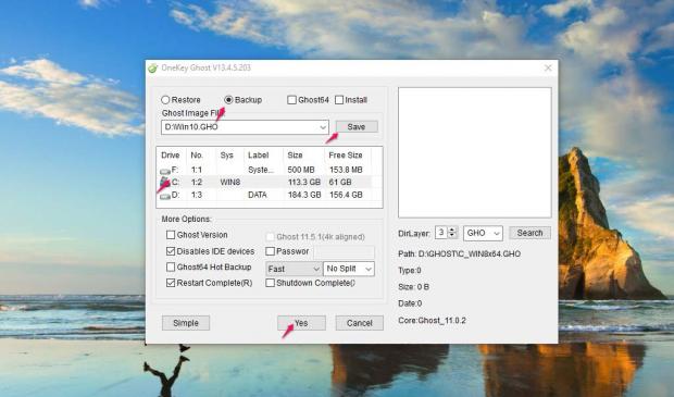 Tạo file ghost với Onekey Ghost