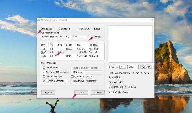 Các bước để bung file Ghost với phần mềm Onekey Ghost: