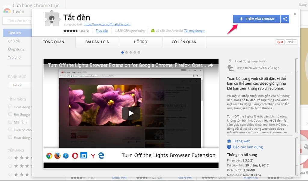 Bước 1: Click tải tiện ích Tiện ích Turn Off the Lights - 'Tắt đèn'