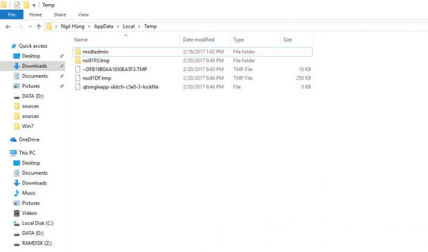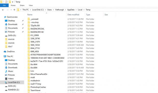 Sau khi tạo tập tin Batch File, bạn hãy khởi động lại máy tính, và mở thư mục Temp để so sánh: